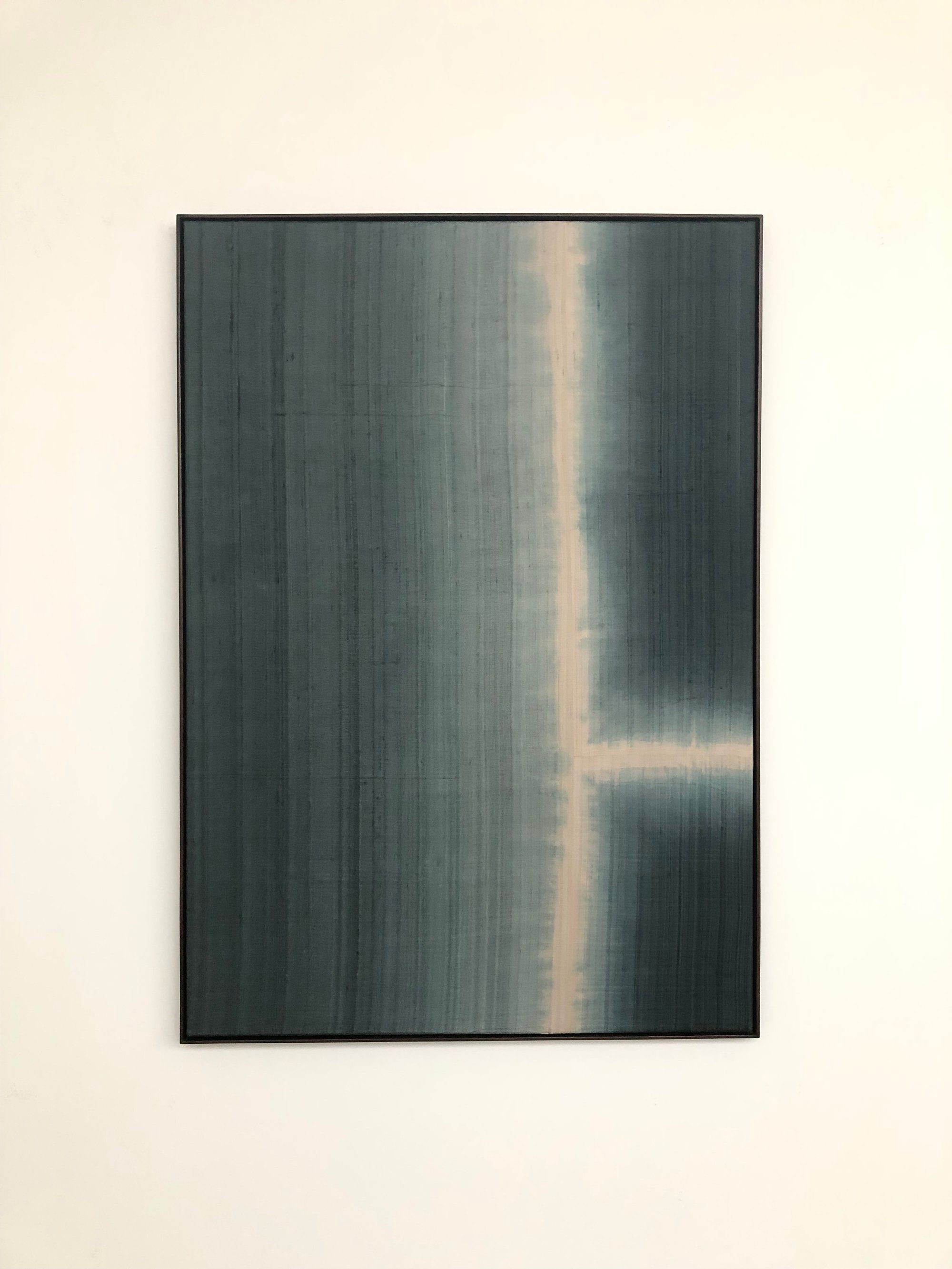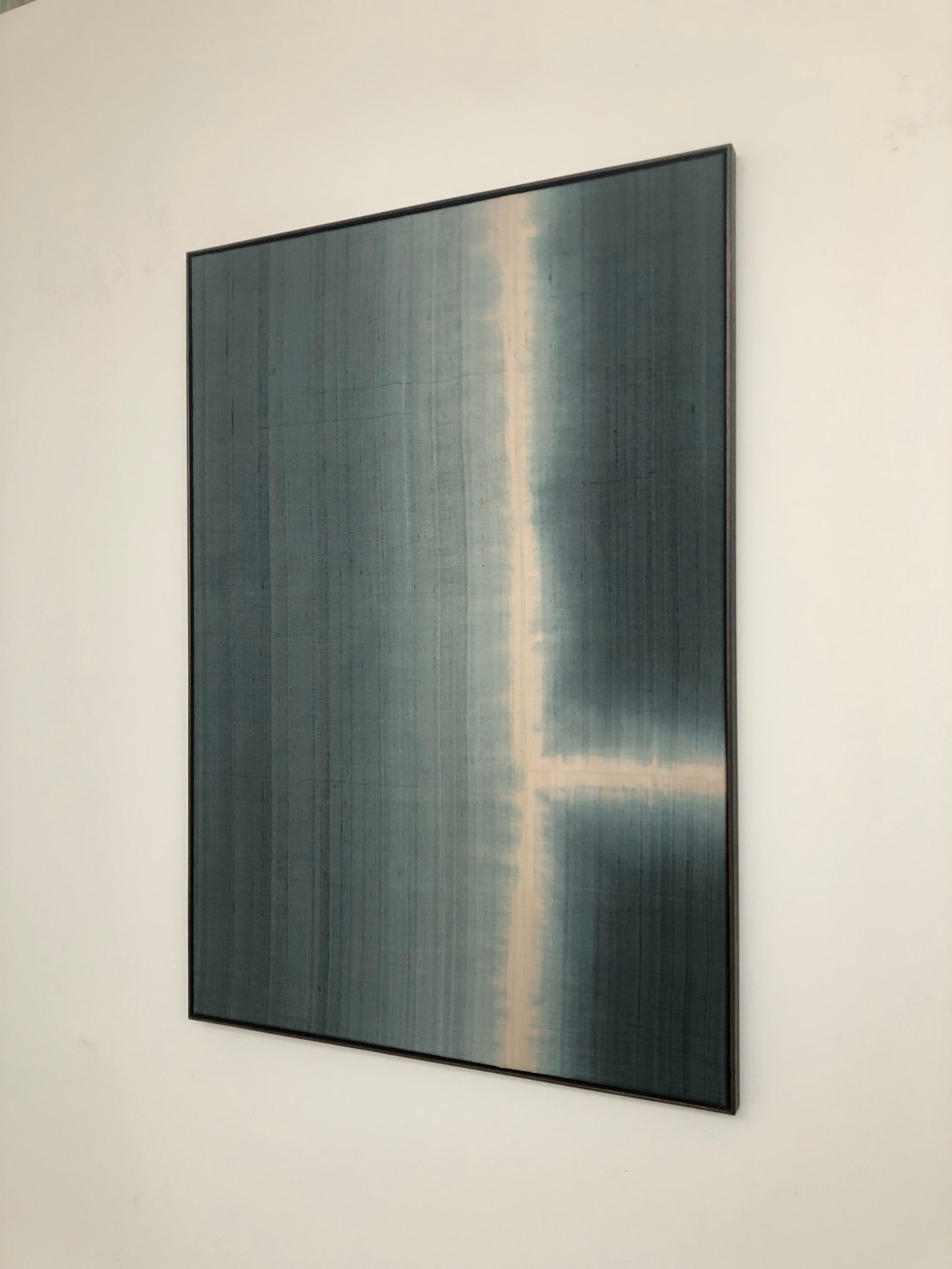 composition made with individually hand dyed pieces of hand woven silk, stitched together.
